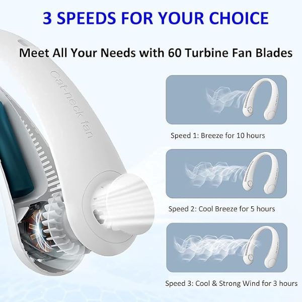 I bërë nga materiali ABS dhe silikoni i butë, ky ventilator për qafë ofron një rotacion fleksibël 360°,